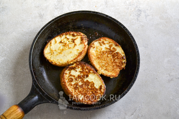 Обжаривайте хлеб поочередно с обеих сторон до румяной корочки на среднем огне.
