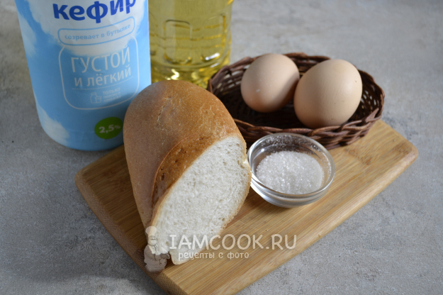 Соберите продукты для приготовления гренок на кефире с яйцом.