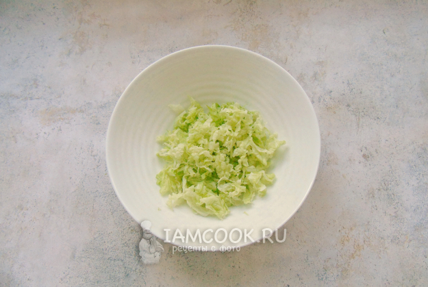 Пекинскую капусту мелко нарежьте.