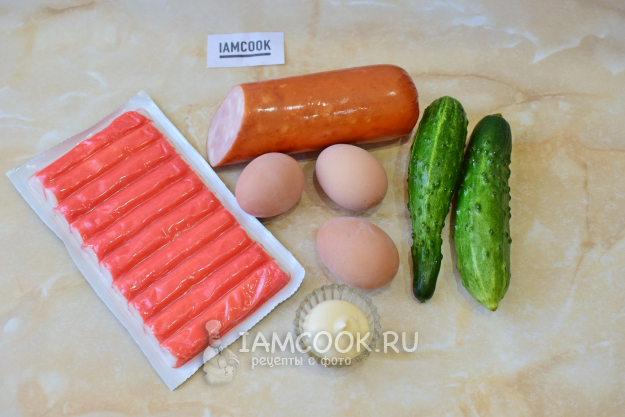 Для приготовления салата «Сказка» с ветчиной соберите необходимые ингредиенты по списку. Пропорции можно немного поменять на свой вкус.