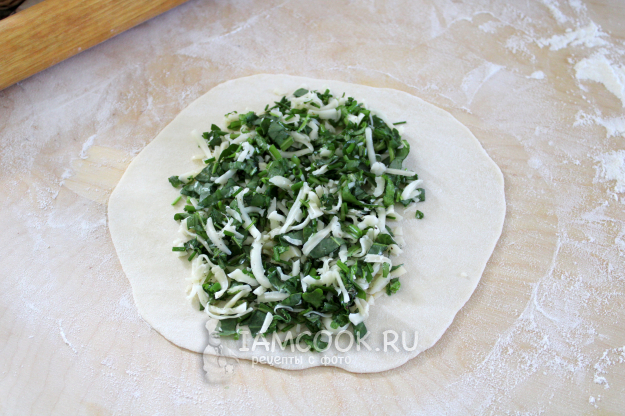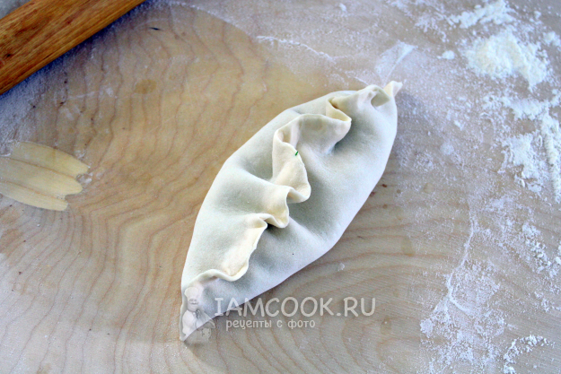Затем эти края, чередуя стороны, уложите на саму лепешку. На фото принцип формовки нормально виден. Дополнительно раскатайте лепешки скалкой, это их выровняет и сделает ещё потоньше.