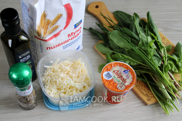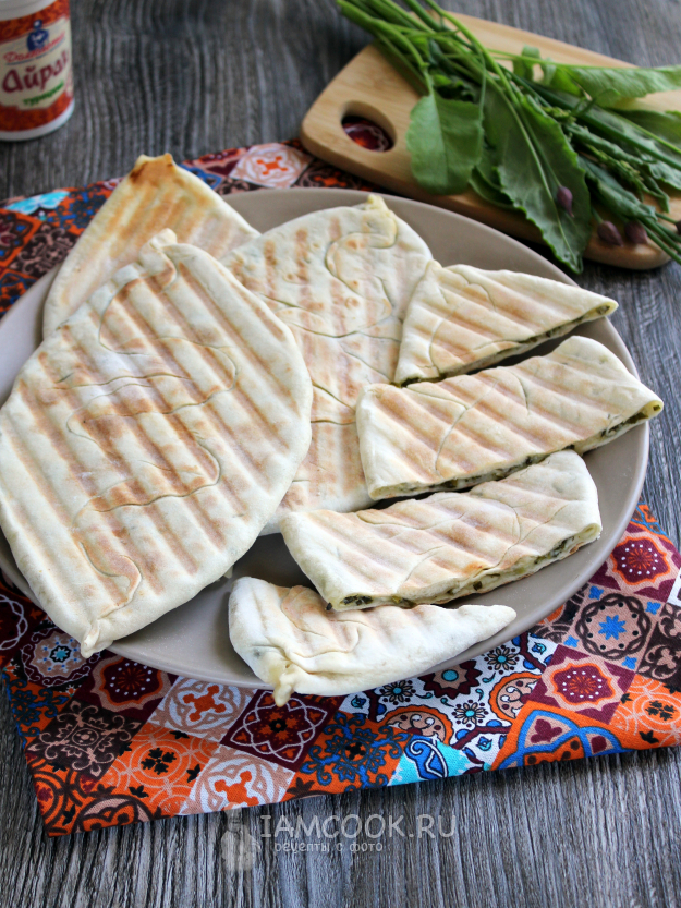 Для варианта приготовления лепешек в электрогриле соберите ингредиенты по списку к рецепту. В качестве жидкости подходят вода, сыворотка, айран, вода с кефиром и тому подобное. Зелень в ассортименте - это прямо всё то, что есть под рукой в зависимости от сезона и полок магазина: перо лука, щавель, шпинат, петрушка, тархун/эстрагон, одуванчик, крапива кинза и другие салатные травки. Перекликается с женгялов хац. Сыры берите тоже практически любые: рассольные, бутербродные, творожные, полутвердые, соединяйте их между собой по своему вкусу.