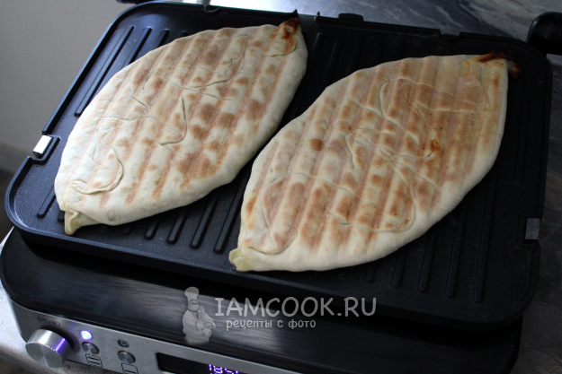Уложите лепешки на жарочную поверхность и закройте второй поверхностью.