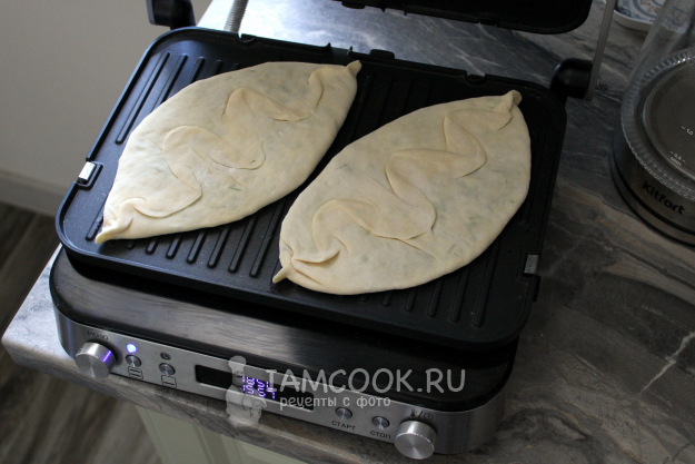 Установите подходящий для жарки теста режим на электрогриле. Это может быть уже автоматический или выбранные вами. Например, подходит температура 180-200 градусов. Время нужно задать такое, чтобы в процессе жарки электрогриль не отключился, пока вы делаете лепешки. Пусть оно будет с запасом, потом по окончании можно просто выключить досрочно.