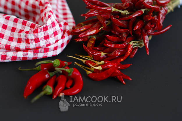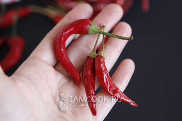 Перец чили можно использовать как свежий, так и сухой. У меня дома были оба варианта. Сухой перчик по размерам оказался чуть меньше, я решила использовать его.