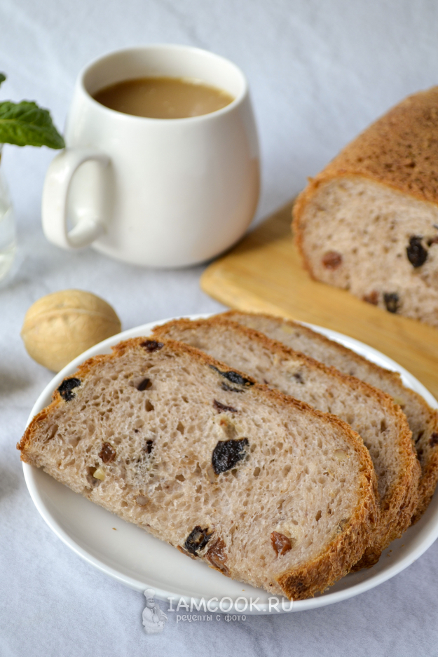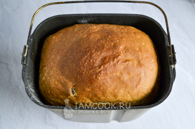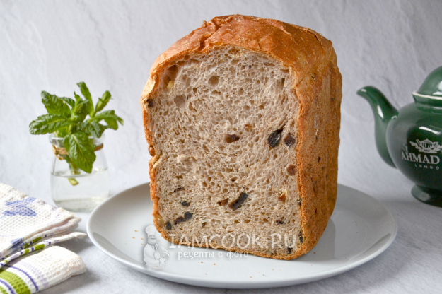 Через 4 часа в хлебопечке хлеб с сухофруктами и орехами готов.