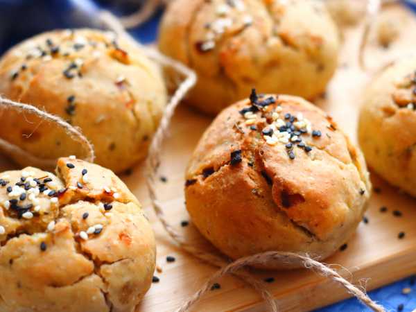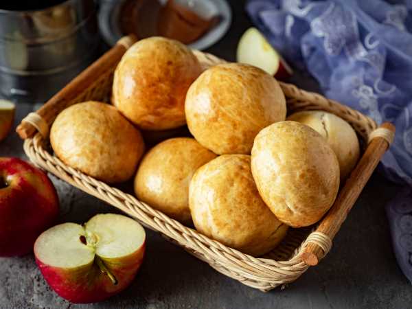 После чего поместите в нагретую духовку и выпекайте булочки при температуре 180°С примерно 20 минут, до румяной корочки.