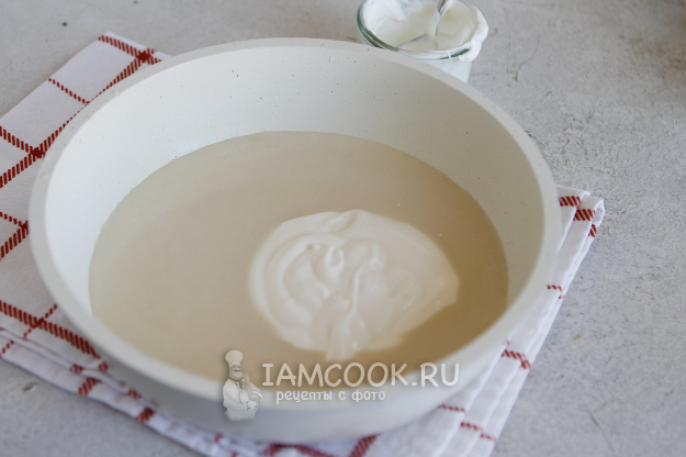Лук отставляем в сторону, займемся приготовлением соуса. Я готовила его в этой же сковороде, вы можете взять другую и готовить все одновременно.