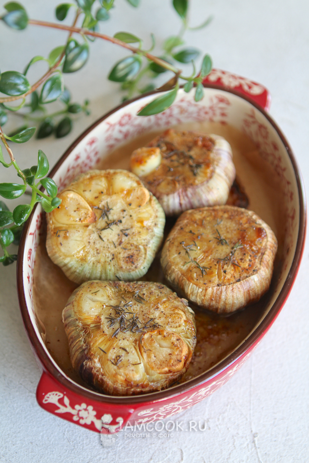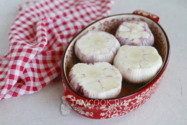 Форму прикрыть фольгой и отправить в духовку. Через 45 минут снимите фольгу и продолжайте запекать чеснок еще 15 минут, чтобы верх головок чеснока немного подрумянился. Через час проверьте, стал ли он мягким. Если да, то можно вынимать. Если нет, то продолжайте запекать дальше.