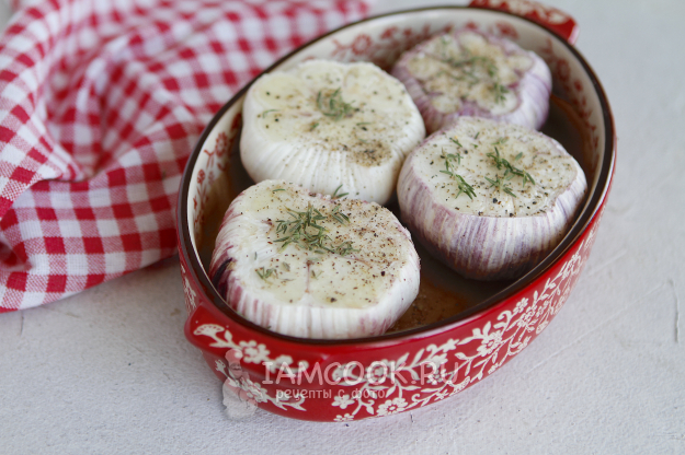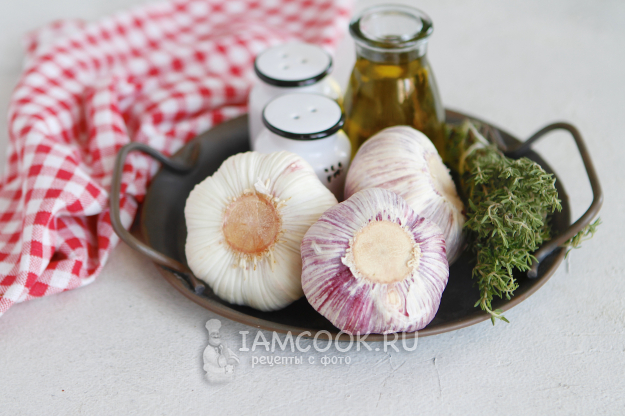 Перед вами все ингредиенты, которые понадобятся для запекания чеснока в духовке.