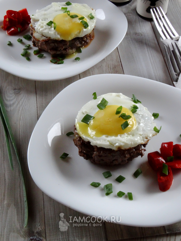 Рубленый бифштекс с яйцом подавать вместе.