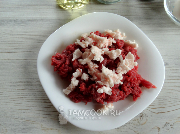 Добавить в мясо мелко нарезанное сало.