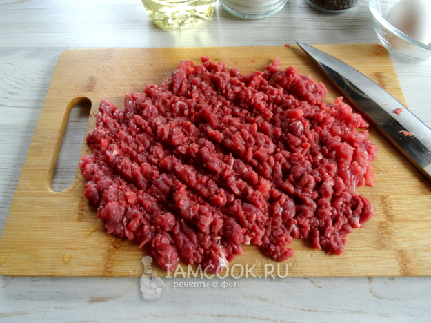 Рубленый бифштекс с яйцом готовим из таких ингредиентов.