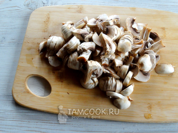 Грибы промыть и нарезать (не мелко).