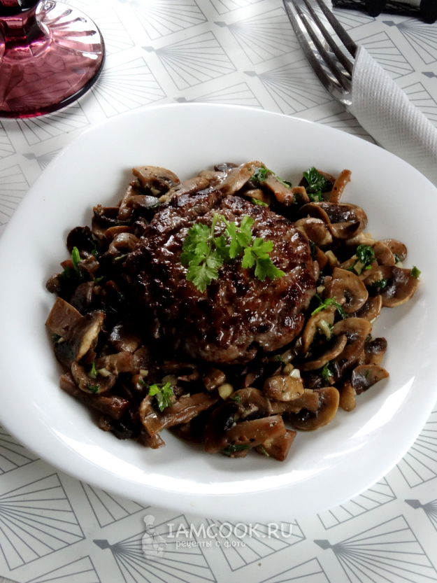 Бифштекс с грибами можно подавать на стол.