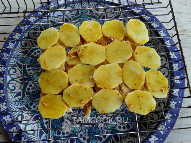 Сверху разложить картофель и тоже смазать маслом.