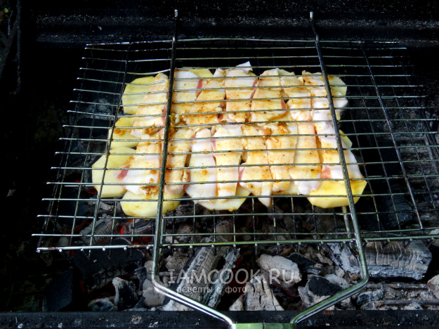 Картошка с салом на мангале на решетке готова.