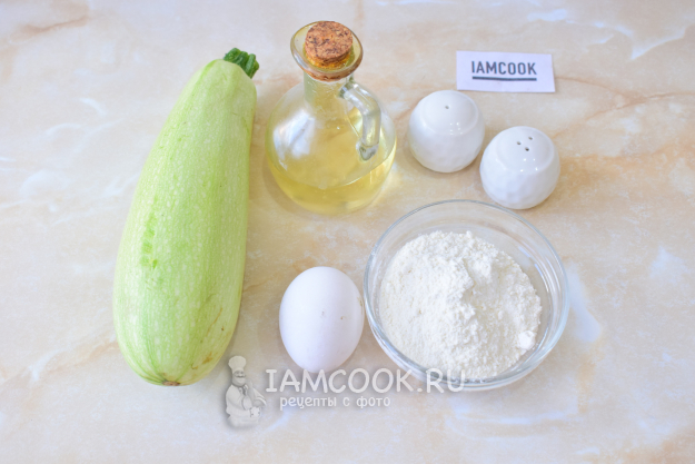 Соберите необходимые ингредиенты для приготовления самых простых оладий из кабачков. Кабачок выбирайте молодой, чтобы в нем еще не было семечек и шкурка была тонкая. Если кабачок взрослый, то грубую шкурку будет необходимо срезать, а сердцевину вырезать.