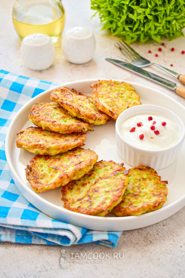 Дополните оладушки сметаной и подавайте к столу - самые простые оладьи из кабачков готовы к дегустации. Приятного аппетита!