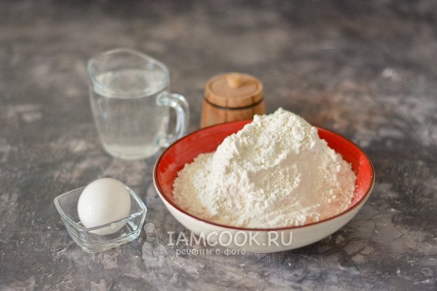 Для того чтобы замесить заварное тесто на манты с яйцом, подготовьте все необходимые продукты по списку.