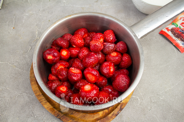 У клубники удалите плодоножки, переложите в посуду, где будете варить варенье.