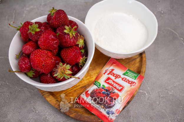 Соберите по списку необходимые продукты для приготовления клубничного варенья с агар-агаром на зиму.