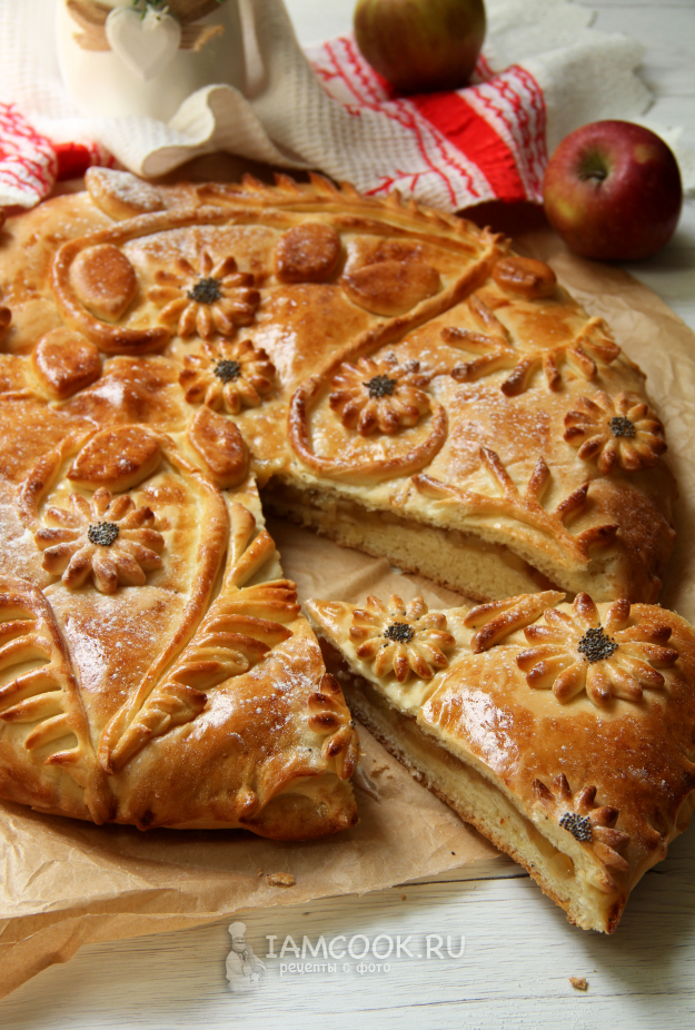 Смазать пирог взбитым желтком.