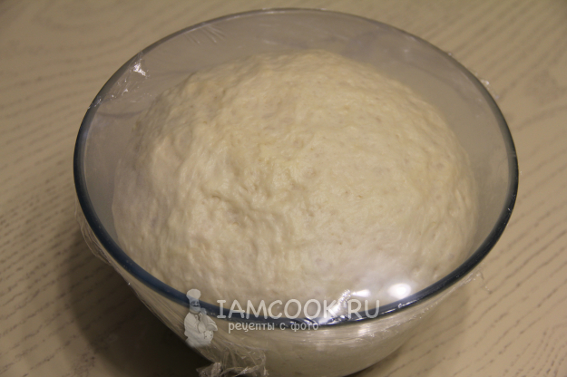 Замесить нежное и мягкое тесто. Сформировать колобок и оставить тесто в миске. Накрыть миску с тестом пленкой и оставить в тепле на 1,5 часа. Тесто округлится и увеличится в два раза. Обмять тесто и, оставив его в миске, убрать в холодильник на пару часов, можно на ночь.
