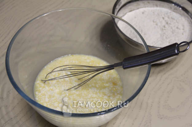 Добавить растопленное масло и перемешать.