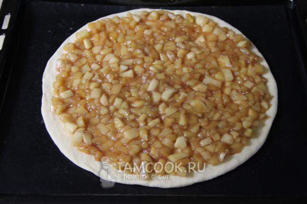 Выложить начинку на тесто и равномерно распределить.