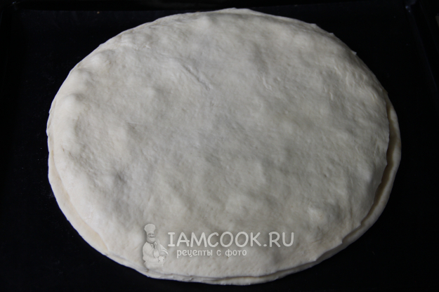 Раскатать одну часть теста в круг примерно 32 см в диаметре.