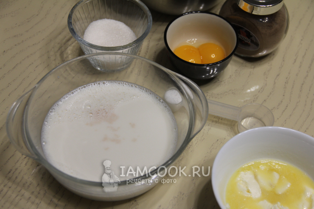Соединить опару, желтки и сахар. Перемешать.