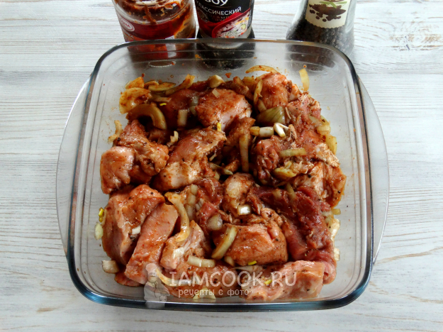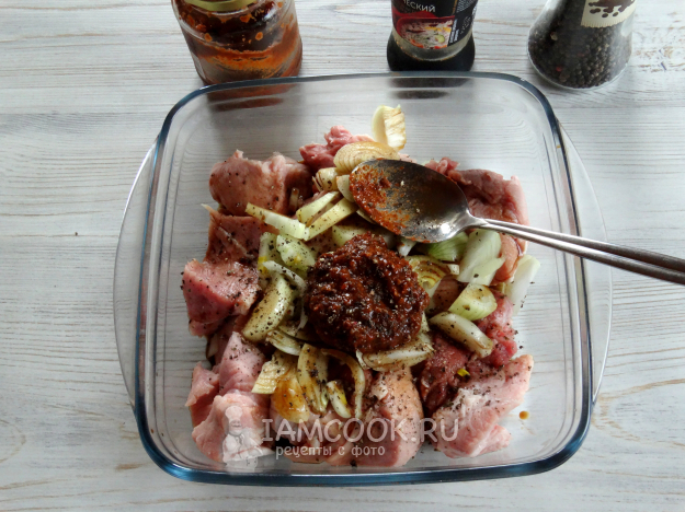 Шашлык с аджикой и соевым соусом готовим из таких ингредиентов.