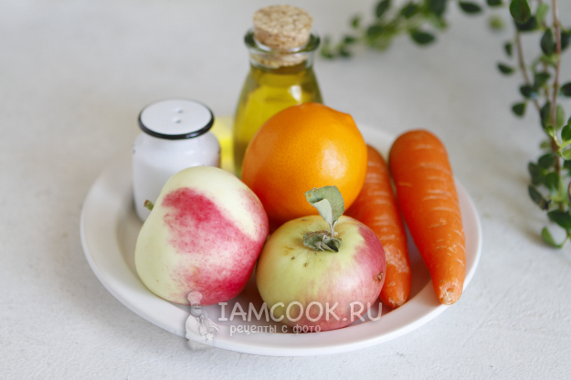 Соберите все продукты, которые необходимы для приготовления детского салата из моркови и яблока.
