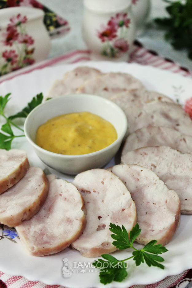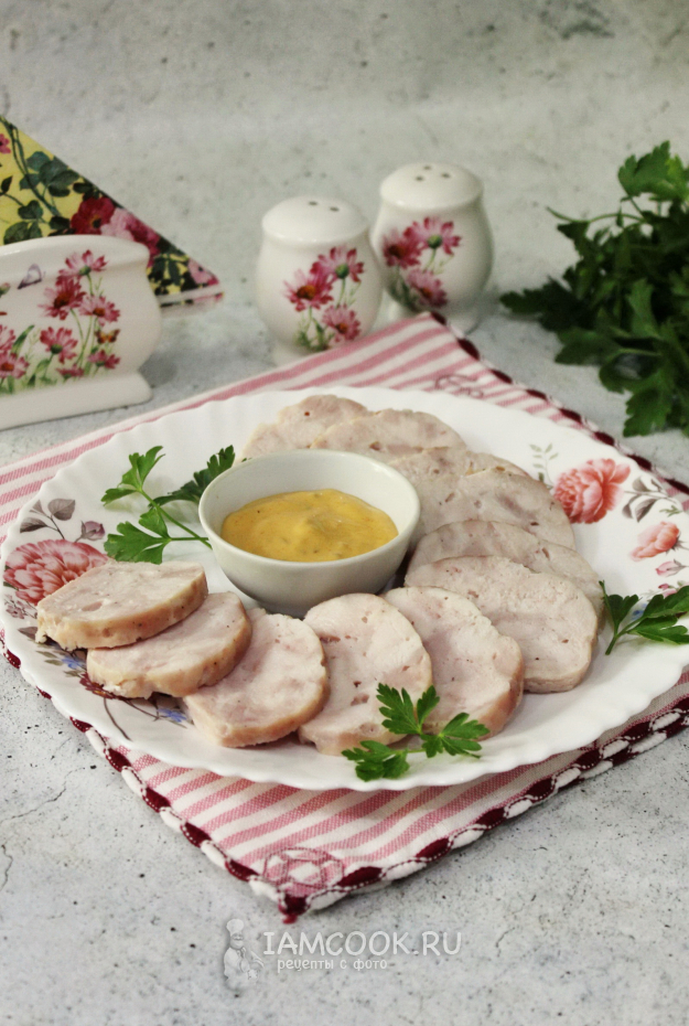 Готовьте ветчину из курицы в духовке 1 час 45 минут. Затем достаньте из духовки и сразу разверните пергамент, который будет влажным, но сока на дне не будет. За счет этого ветчина получается сочной.
