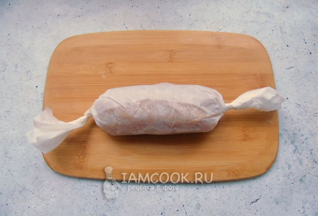 Заверните колбаску в пергамент и скрутите концы, как у конфеты.