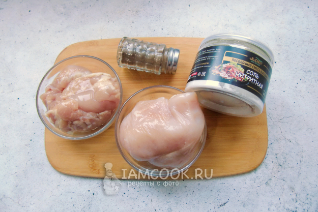 Соберите ингредиенты для приготовления ветчины из курицы в духовке.