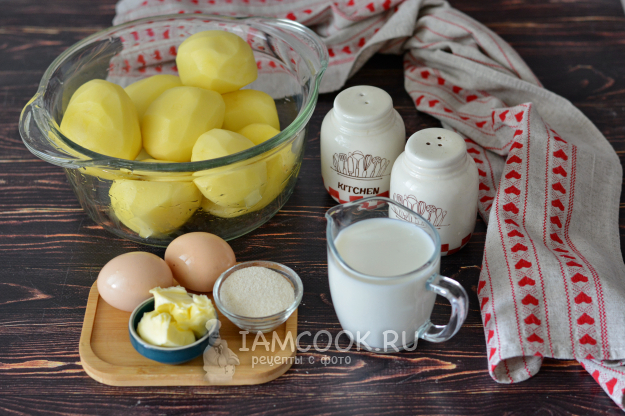 Для того чтобы приготовить гуленник из картошки и яиц в духовке, соберите все продукты по списку.