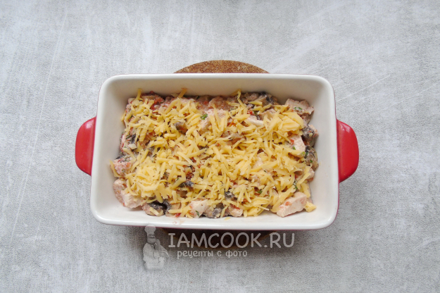 Посыпьте тертым сыром и отправьте в духовку на 10 минут.