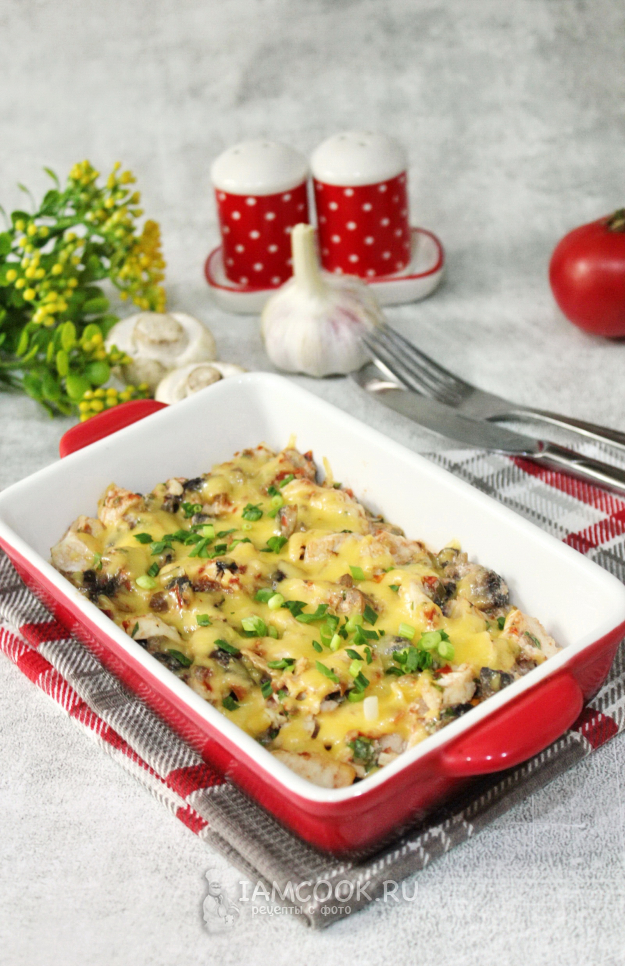 Горячая закуска с курицей и грибами готова.