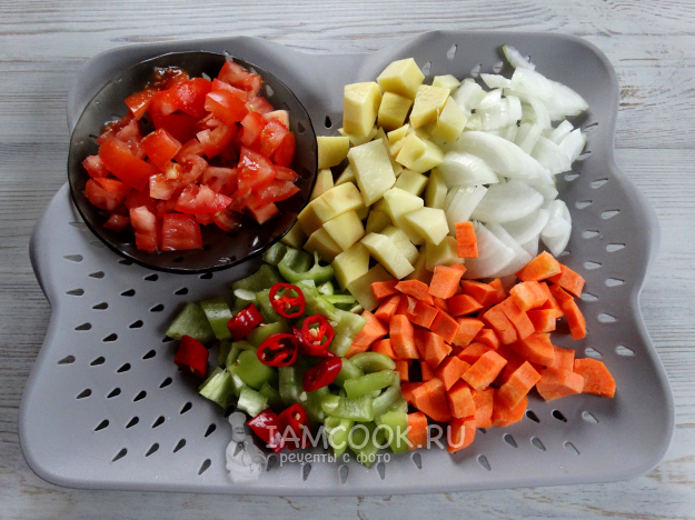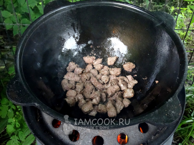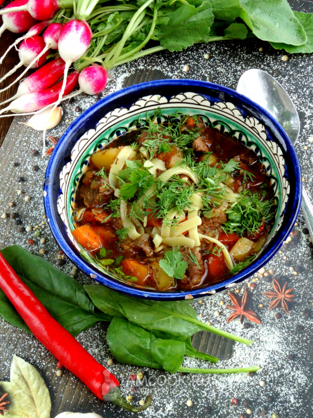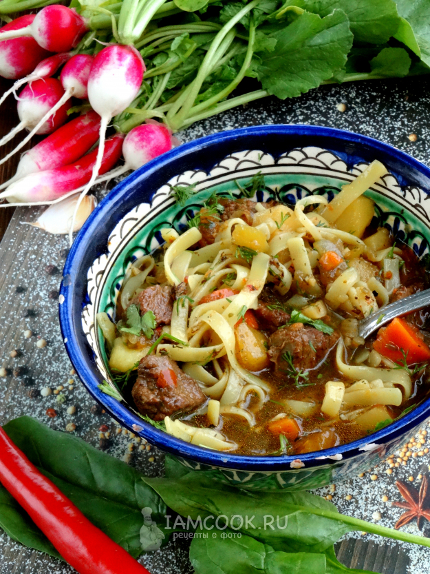 Лагман из говядины в казане на костре готовим из таких ингредиентов.