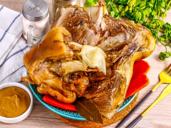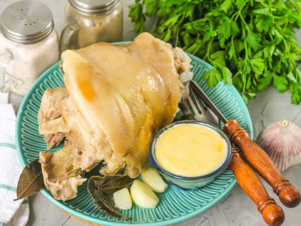 Рульку тщательно промойте в проточной воде и обсушите бумажными полотенцами. Затем обмажьте рульку получившимся маринадом со всех сторон и оставьте мариноваться на 2-4 часа.