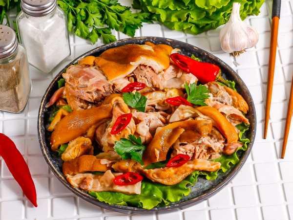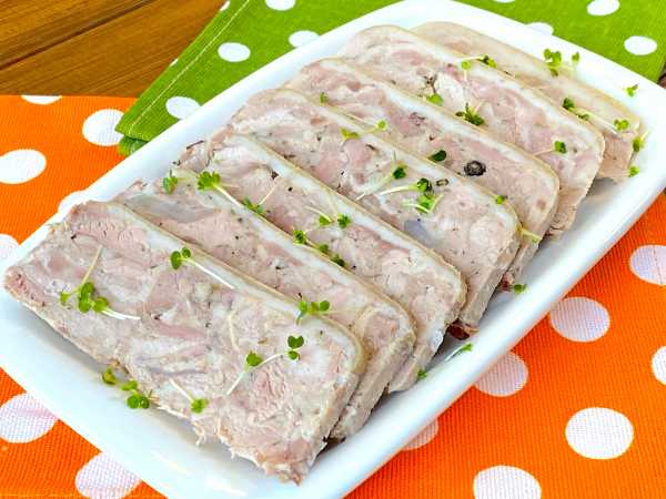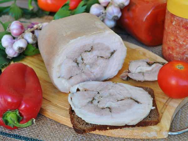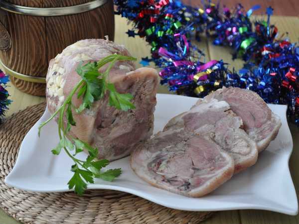 Готовую рульку остудите, разверните и нарежьте на кусочки.