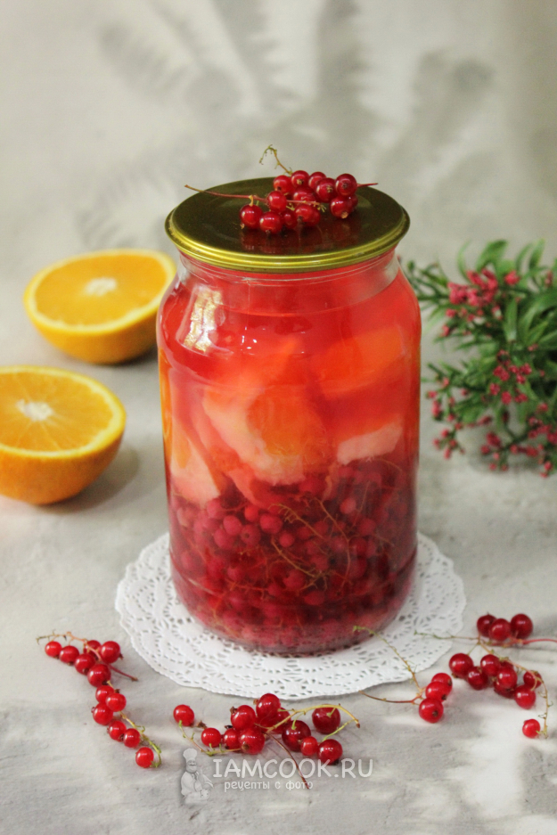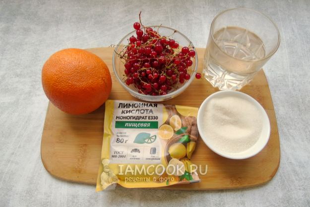 Соберите ингредиенты для приготовления компота из красной смородины с апельсином на зиму.