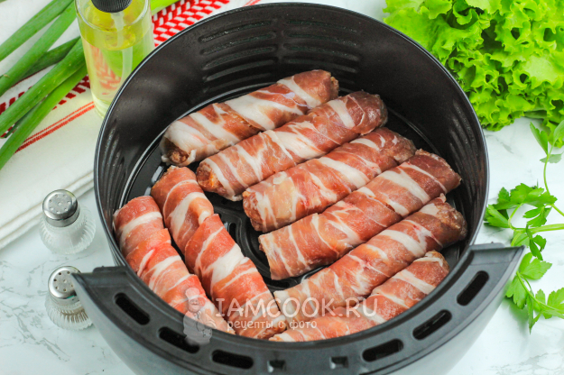 Активируйте температуру в 180 градусов и запеките чевапчичи в аэрогриле примерно 25 минут. Время от времени проверяйте их, переворачивать не нужно.