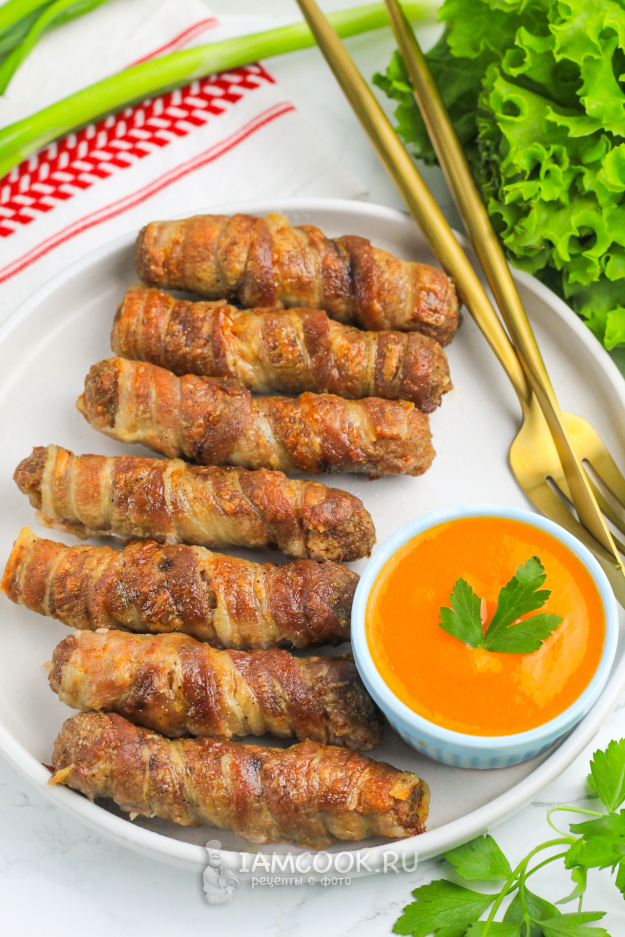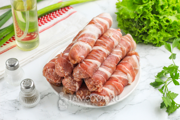 Заготовки колбасок могут быть без бекона или в беконе, из смешанного фарша или из моно фарша.
