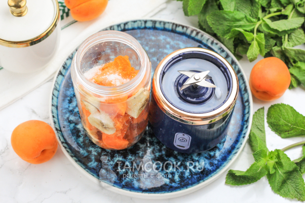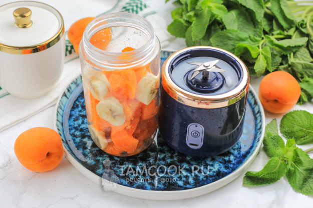 Продукты для приготовления смузи из банана и абрикоса - перед вами!