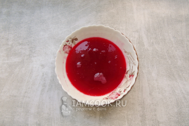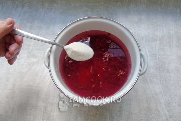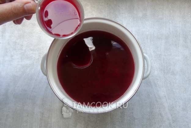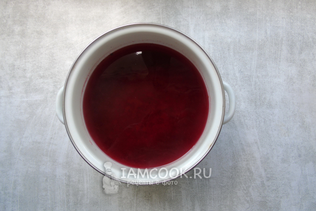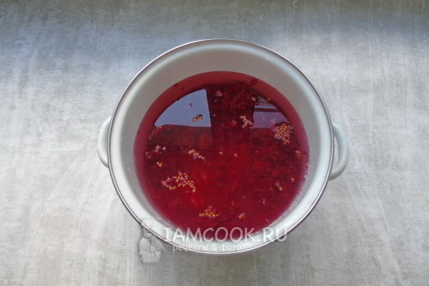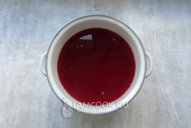 После отвар из жмыха процедите и влейте в него сок красной смородины.