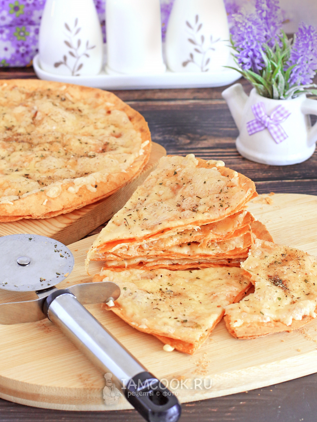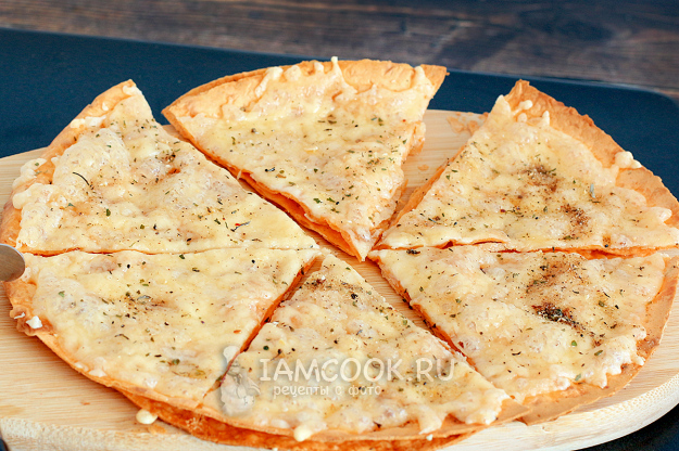 Соберите необходимые составляющие для приготовления лепешек из лаваша с сыром в духовке. Я выбрала лаваш с томатами только потому, что он был потолще остальных.