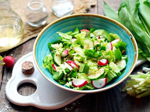 Соедините в миске все овощи. Приправьте солью и по желанию - перцем. Полейте растительным маслом.